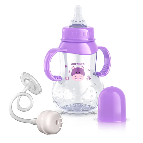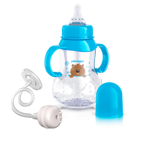 La nutrición es la etapa más importante en el crecimiento del bebe, por esto CORCHITO® cuenta con el Biberón Anticólico Fresito, ideal para bebes de 4 meses de edad en adelante. Cuenta con una válvula anticólico que les permite succionar sin necesidad de desafiar los efectos de la presión negativa del vacío, o la incomodidad de ingerir burbujas de aire. Esto ayuda a reducir problemas típicos de la alimentación infantil como reflujo, cólicos, eructos, vómito y gases. El líquido fluye libremente sin que el chupo se colapse.